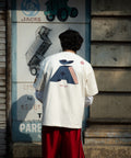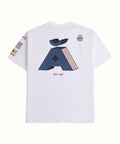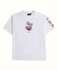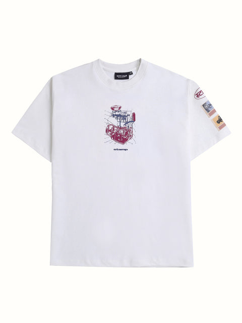 Off-White round neck t-shirt featuring Stamp Duty artwork printed on back, front & sleeves.
