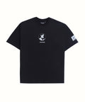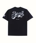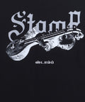 Black round neck t-shirt featuring Stamp Duty artwork printed on back, front & sleeves.
