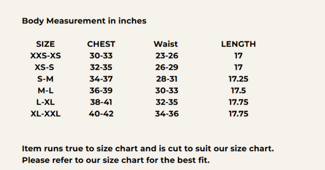 Body measurements in inches for reference: